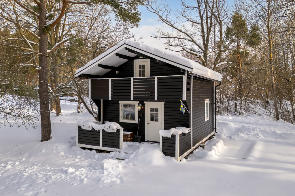 Lillstugan är i sin stil liknande gäststugan, men med helt annan utformning och planlösning. Här möts du genast av den magnifika takhöjden och den stora rymden som skapar stora ytor även med villamått sett. I hallen finns ingång till duschrummet och platsbyggda garderober. Vidare in finns sällskapsytor och det fullt utrustade köket som inkluderar kyl/frys, diskmaskin, ugn och spishäll. Elegant marockanskt kakel sitter ovanför bänkskivan i trä och runt om i stugan löper en vit pärlspont från golvlisten upp till takets nock som endast delvis bryts av sovloftet en trappa upp. Under det senaste året har även en tillbyggnad gjorts till stugan vilket ger ett helt extrarum för extra sovplatser eller mer sällskapsyta. Rummet har även en enskild ingång mot altanen.