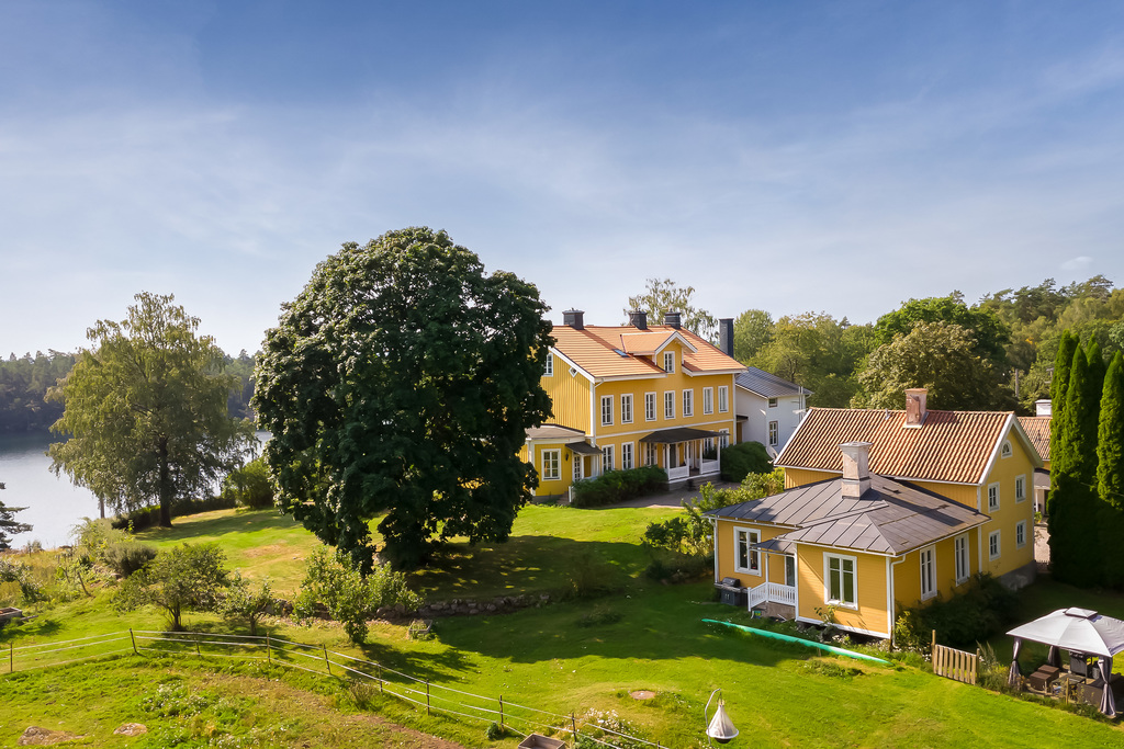 Gårdsbilden är vackert sammanhållen, omgiven av en fantastisk naturbild. Från huvudbyggnadens spektakulära sällskapsrum öppnar gården upp sig mot den angränsande sjön, vilket ger en mycket vacker vy från veranda, trädgård och balkong. Sjön Skiren är uppskattad för sitt klara vatten och goda vattenkvalitet. Intill strandlinjen har fastigheten tillgång till sjöbod med sällskapsrum och öppen spis samt vedeldad bastu med egen brygga.