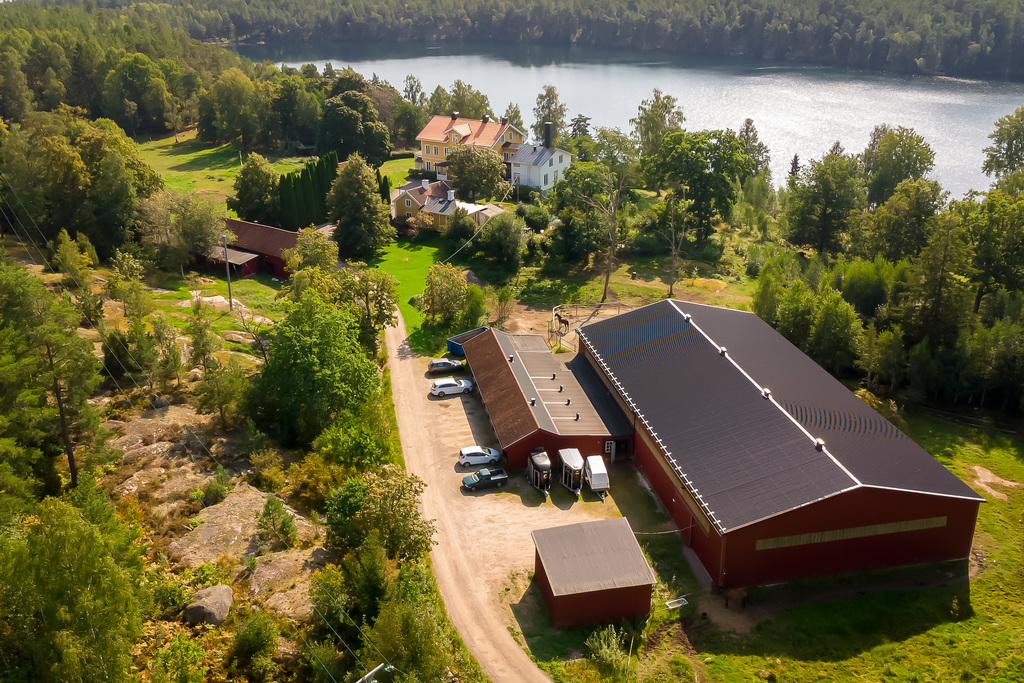 Beläget på egen strandtomt och omgivet av fantastiska naturmiljöer ligger gården enskilt och idylliskt i högt söderläge med vyer över sjö, hagar och ekbackar.