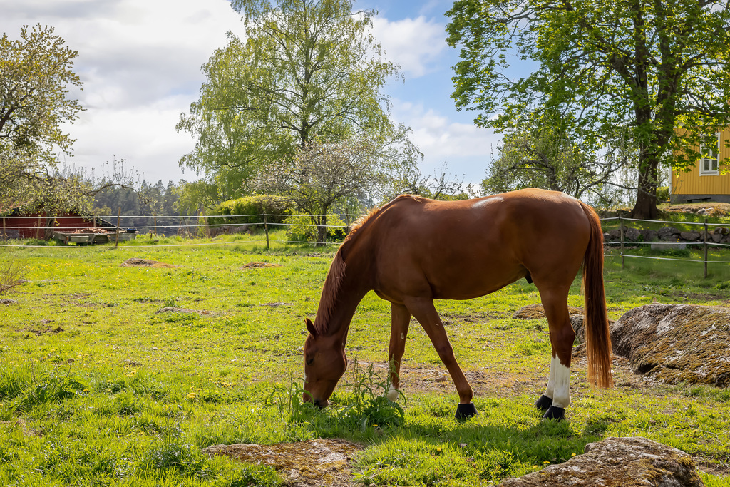 Till gården hör även två stall med plats för totalt 8 hästar. Här finns även ridhus, paddock och flertalet hagar. Möjlighet finns också till ytterligare djurhållning, exempelvis får, höns, ankor och smådjur.