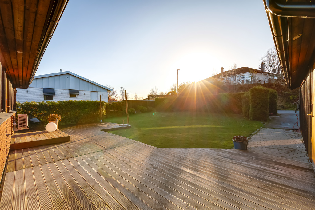 Den friköpta tomten är insynsskyddad och anpassad för både familjeliv och avkoppling. På framsidan finns en stor, plan gräsmatta där barn kan leka fritt, och intill huset ligger en möblerbar altan i härligt soligt läge – perfekt för morgonkaffet eller lugna stunder i eftermiddagssolen. På baksidan hittar du balkongen som bjuder på de magiska vyerna som gör detta boende unikt. Här skiftar landskapet i färg och ljus beroende på årstid och tid på dygnet, och utsikten blir en naturlig del av hemmets atmosfär.