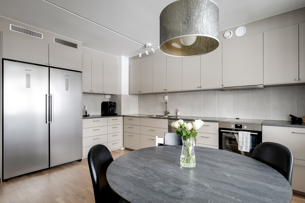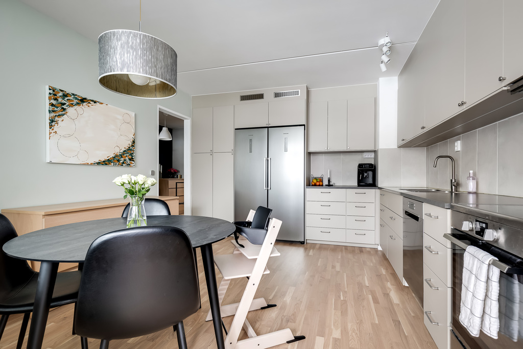 Lägenheten imponerar med ett stilrent renoverat kök, ett rymligt vardagsrum med härliga sociala ytor samt plats för både soffgrupp och matbord – perfekt för umgänge med familj och vänner. De två rejäla sovrummen ger gott om utrymme för både avkoppling och förvaring, och bostaden kompletteras av både badrum och gäst-wc, fullt utrustade för en bekväm vardag.