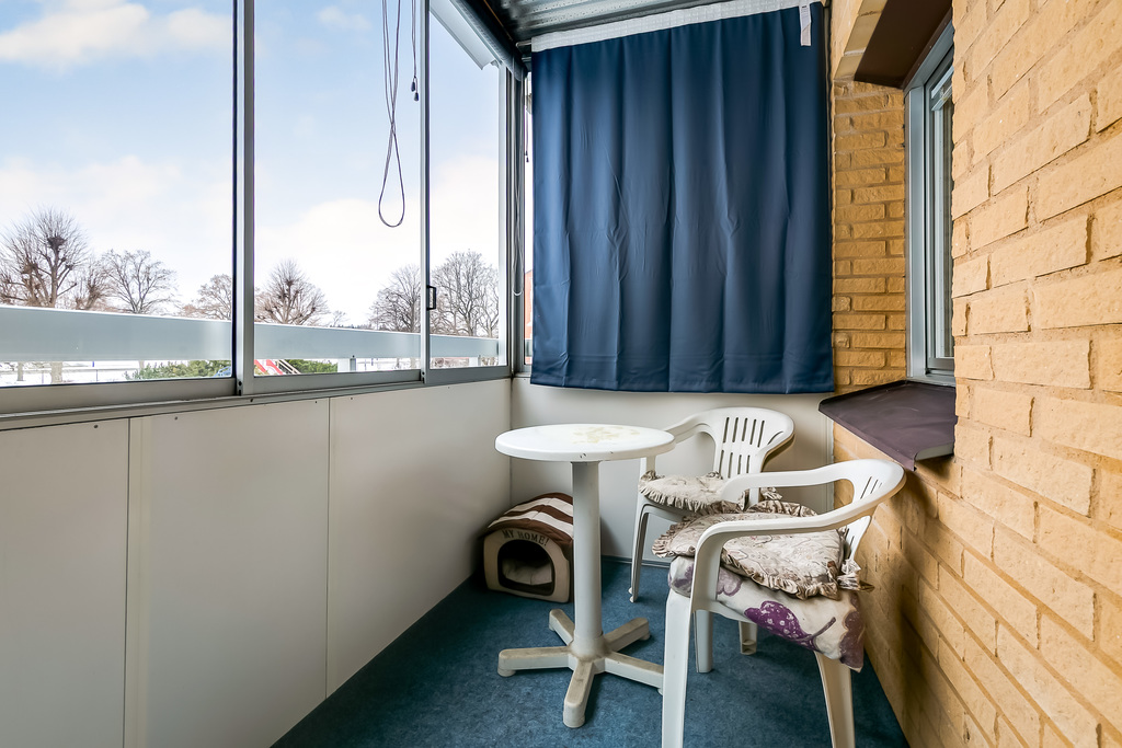 Den inglasade balkongen vetter mot sydväst och föreningens lugna och välskötta grönytor. Här kan du njuta av eftermiddags- och kvällssol i en skyddad och rogivande miljö, oavsett årstid. En idealisk plats för avkoppling, växter eller en kopp kaffe.