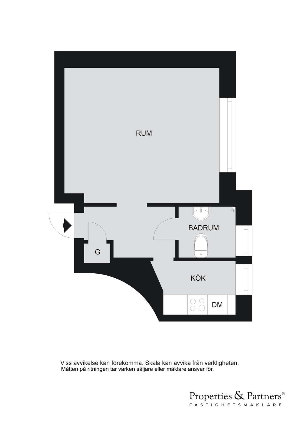 Bostaden erbjuder ett ljust allrum med fina ytskikt och stora fönster som ger ett härligt ljusinsläpp. Det lilla men funktionella köket har klinkergolv, ljusa väggar och är utrustat med det som behövs för vardagen. Hallen är rymlig och erbjuder goda förvaringsmöjligheter. Duschrum med duschhörna, WC, handfat samt spegelskåp.
