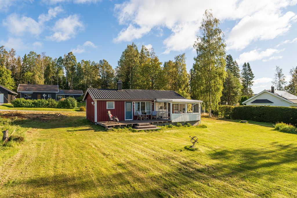 På tomten finns två uthus, ena används som gästhus med två sängplatser och det andra som förråd, vilket ger goda förvaringsmöjligheter. Stugan byggdes ut ca 1996 med sovrummet och den inglasade delen av bostaden, vilket skapar extra utrymme och en trivsam känsla året om.