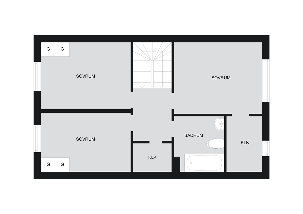Tre sovrum varav av de större har en klädkammare och de två andra rummen har garderober.