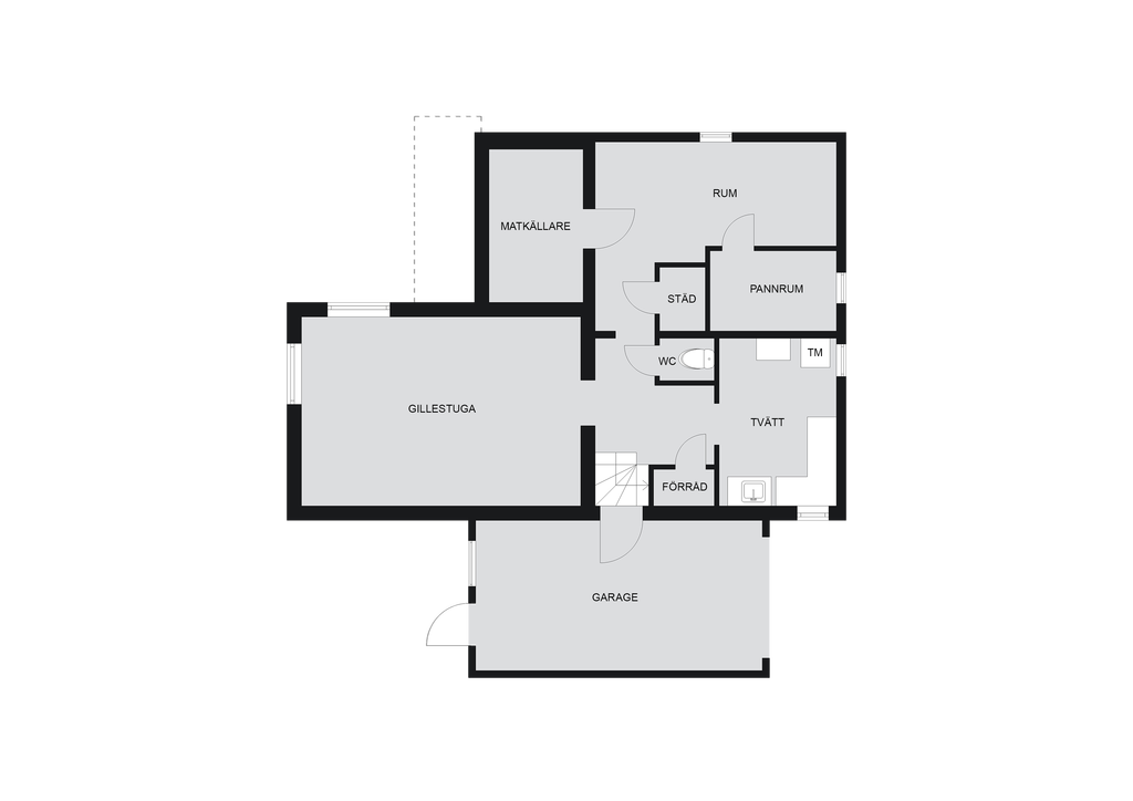 Källaren bjuder på stora ytor och många möjligheter! Här finns bland annat ett rymlig gillestuga, wc, tvättstuga med tvättmaskin, matkällare och gott om förrådsutrymme. Perfekt för hobby, förvaring eller kanske ett framtida gästrum?