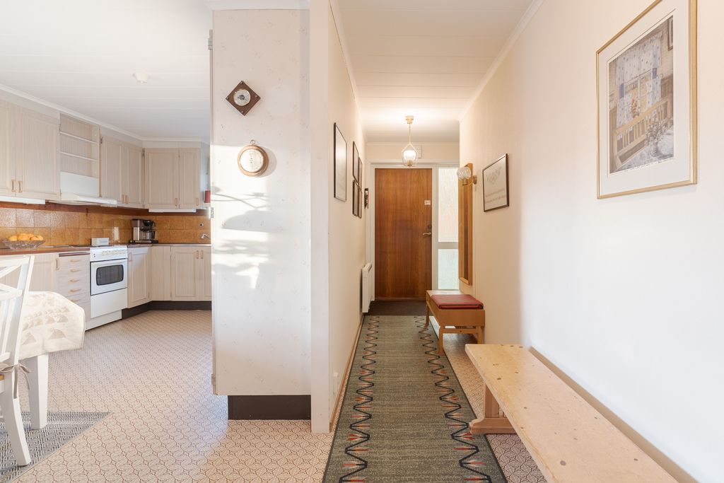 Välkommen in i denna rymliga etagevilla med fem sovrum, belägen i ett trivsamt område med närhet till natur och promenadstråk. Redan i entrén möts du av en praktisk hall där det finns gott om plats för avhängning av ytterkläder. Här ligger även ett badrum med wc, tvättställ och dusch. Från hallen når du köket som erbjuder bra arbetsytor, en trevlig matplats och utgång till en mindre uteplats med sol under eftermiddagen. På detta plan finns också ett mindre sovrum som passar perfekt som kontor eller gästrum.